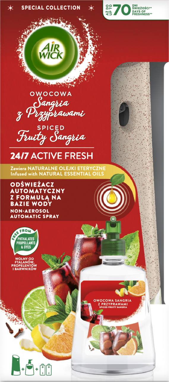 Air Wick Owocowa Sangria z przyprawami – automatyczny odświeżacz powietrza (zestaw)
