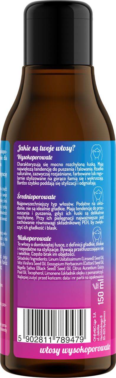 OnlyBio Hair in Balance Olej do olejowania włosów wysokoporowatych 150ml to idealny wybór dla osób, które chcą świadomie zadbać o włosy wymagające intensywnej regeneracji i przywrócić im zdrowy, zadbany wygląd.